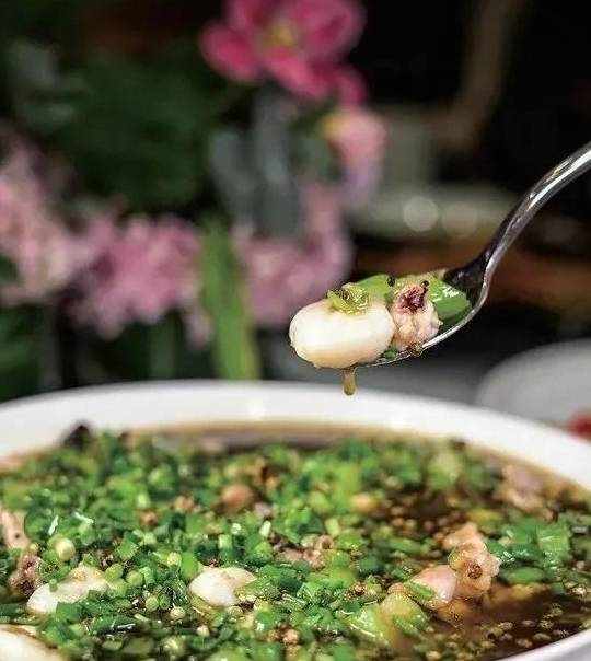 甲魚1隻肥腸、青豌豆、薑米、蔥花、醪糟、腐乳、豆瓣、蒸肉米粉、胡椒粉、花椒粉、雞精、老抽、紅油各適量
