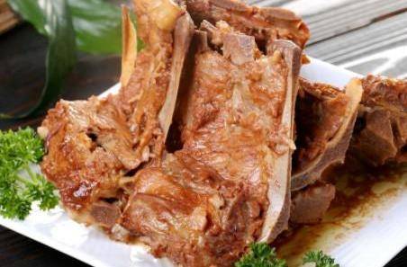 醬骨架:鍋內燒水,水開將脊骨下水焯,再倒少許醋,蓋鍋蓋煮3分鐘後將骨頭取出。鍋內放底油少許,油6成熱時放糖,然後不停的攪拌糖。待糖顏色焦糖色後,需馬上加入大量清水。水下鍋後,加入薑片、蔥白、大料、花椒、桂皮、茴香、香葉。水開後加入脊骨,然後再放入適量老抽、食鹽。水再次大開後5分鐘關小火煮30分鐘,關火燜5分鐘即可出鍋盛盤。