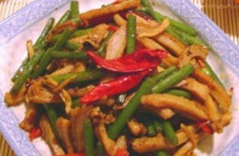 小炒香辣牛肚:將買來的牛肚洗凈,涼水時放入鍋內放入料酒薑片煮沸去異味,把熟牛肚切成細條,蔥切段,筍切薄片、青紅椒切圈,薑切成片備用;鍋內放油,爆香蔥薑、下入牛肚料酒迅速翻炒,放入配菜,調入生抽、香醋、糖、鹽、胡椒粉、味精翻炒均勻起鍋即可。