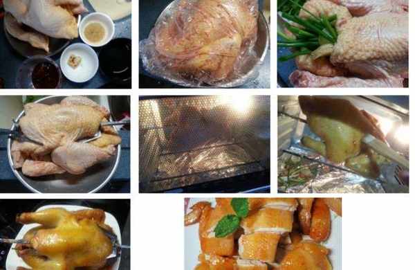 6當燒完50分鐘後,打開焗爐門掃上蜜糖(不用熄機,當雞轉動時可均勻地掃蜜糖)再燒多10-15分鐘即可
