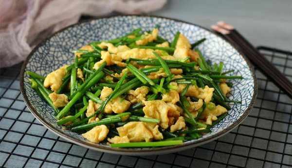 【材料】韭苔:1小把、雞蛋:2個、鹽:適量、生抽:適量