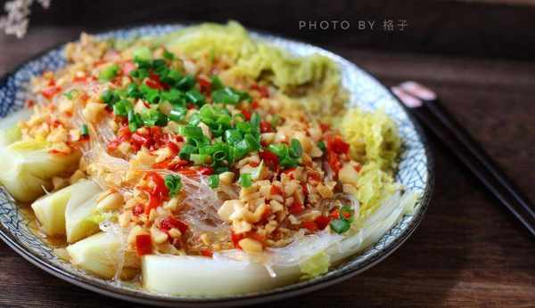 【材料】娃娃菜:1棵、粉絲:1捆、蒜蓉:適量、剁椒醬:1勺、蠔油:1勺、生抽:1勺、鹽:少許、蔥花:適量
