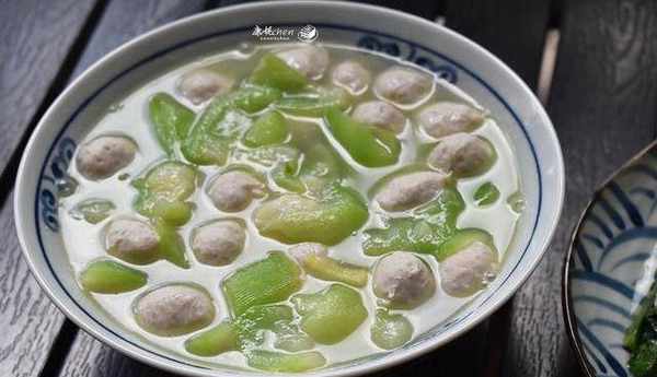絲瓜肉丸子湯是一道湯菜,既可以喝到鮮美的湯水,又可以吃到Q彈肉質味濃鬱的丸子。目前廣東還是高溫天氣,吃點蔬菜湯清爽開胃,絲瓜是夏天的蔬菜瓜果,絲瓜可以清炒,或者搭配肉類炒菜,我傢特別喜歡用絲瓜煮湯。