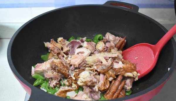 扒雞切成小塊,青椒炒斷生後,放入扒雞,扒雞可以直接吃,扒雞不需要炒太久。
