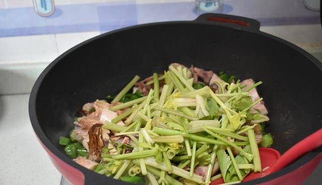 芹菜切掉頭尾部分,芹菜洗凈後切成小段。把芹菜放入炒鍋,把芹菜、青椒和雞塊一起煸炒,芹菜炒熟,放一勺生抽調味,炒勻就可以裝盤瞭。