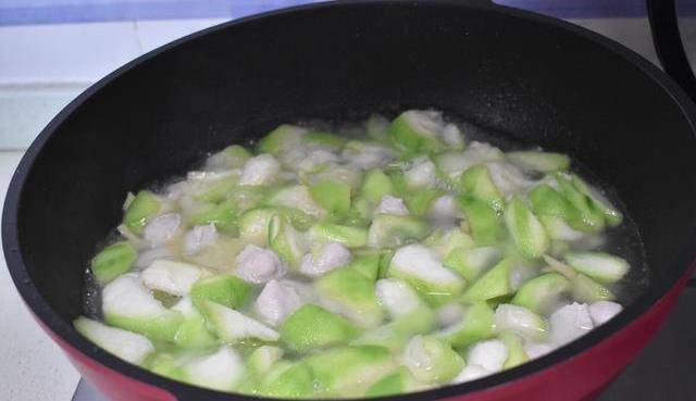 放入肉丸子和溫水,蓋上蓋子煮沸,煮絲瓜湯要保持絲瓜碧綠的色澤,那麼煮絲瓜不要太久,肉丸子本身已經熟的,肉丸子和水一起加入,目的就是減少煮絲瓜的時間,當湯水煮沸後多煮兩三分鐘就可以放鹽調味瞭。