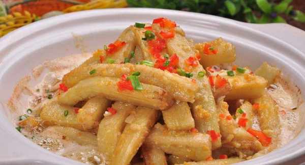 第五個想要介紹給大傢的美食就是咸蛋茄子,茄子本來非常好看,這道菜看上去金燦燦的,非常吸引人,相信你吃完之後一定回味無窮