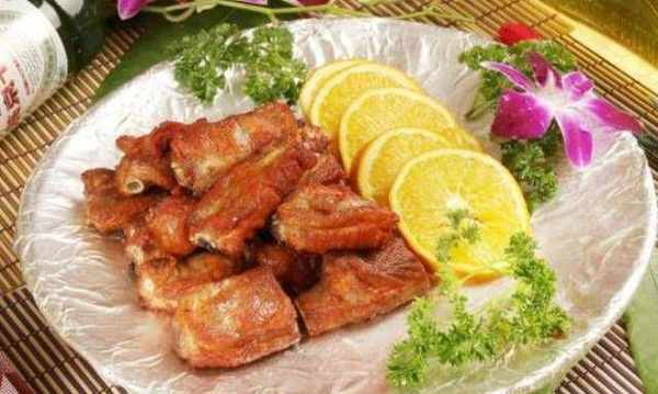 金牌蒜香骨-1、豬肋排改刀成12厘米的長段,用清水漂去血水2、用調料醃制2小時(海鮮醬,沙茶醬,老抽,生抽,蠔油,味精,白糖)以上。3、油燒到二成熱,把排骨放入鍋中,油溫由低至高慢慢炸制,至肋排成熟、外皮結殼取出瀝幹油。4、再在鍋中放入蒜茸、幹辣椒炒出香味,再放入肋排稍炒,加上調料,裝盆即可。