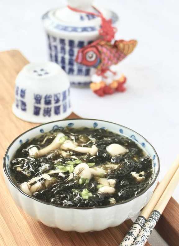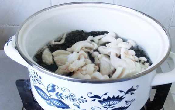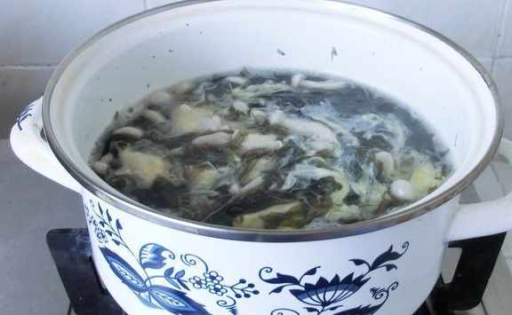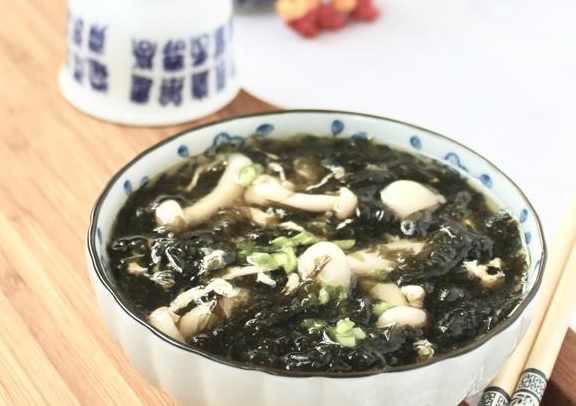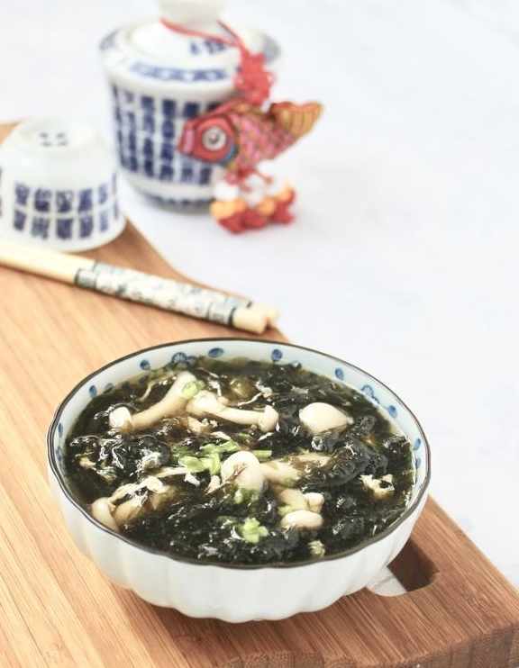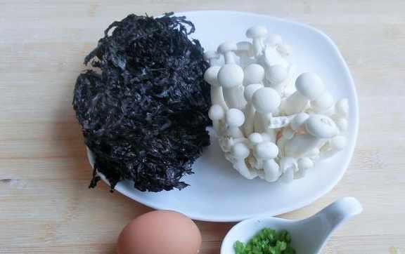 資料:紫菜5克、白玉菇200克、雞蛋1個、青蒜末少許