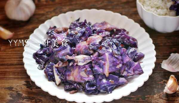 【材料】:紫甘藍、豬油渣、蒜片、蠔油、辣椒醬