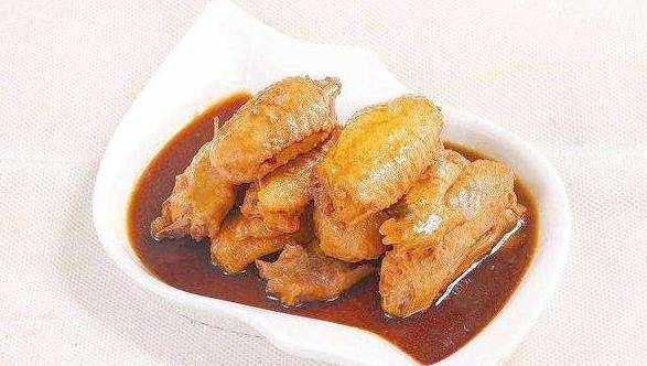 3.碗內加芥末醬、香醋調散,撒入鹽、味精、淋薑汁油、辣醬油、花椒油、醬油調成味汁,澆在雞翅上即成。
