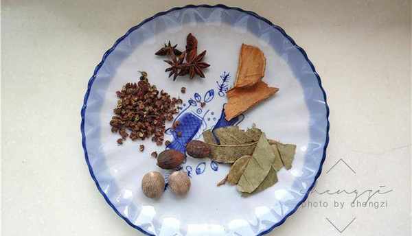1、先把香料準備好,我是傢裡有的香料都用上瞭,必放的有八角、花椒粒、香葉這三樣,其他的可按照傢裡有的來調整。