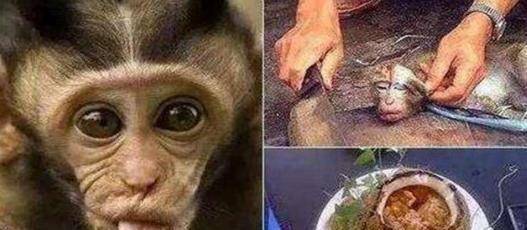 猴子屬於人類的近親,一般沒有人會用猴子來制作食物。但是卻還是有人迷信猴腦補腦,生食猴腦。這種吃法還必須取活的猴子,把猴子固定住刨開頭蓋骨,在潑上熱油,此時猴子還沒有死去,不斷的發出慘叫聲,因為食客們堅信隻有這樣的猴腦才是最新鮮的。不得不說,這些食客真的是腦子少根筋!