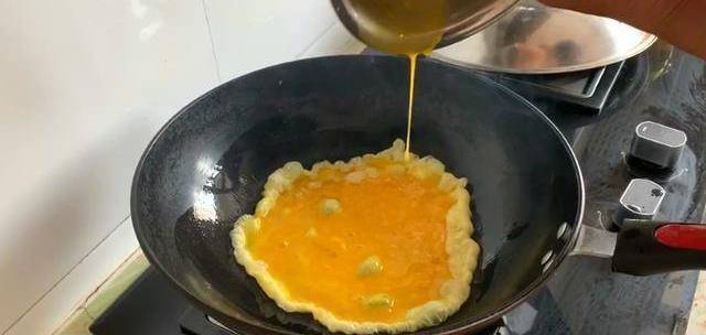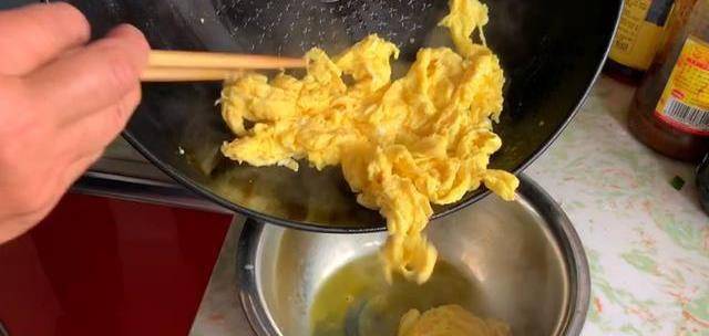 另起鍋,加少許油,打入3個母雞蛋,攪拌碎,成形就可以裝出。