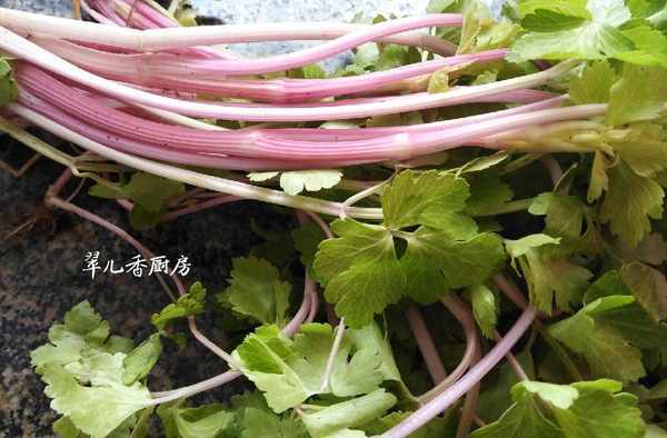 隻記得芹菜莖不是綠色就是白色,在小編的傢鄉,小編還是第一次見,還真稀有,居然芹菜莖是紫色的,這還沒吃過呢?當時就想,不知道是不是轉基因的,但聞起來卻很香,是芹菜的味道!