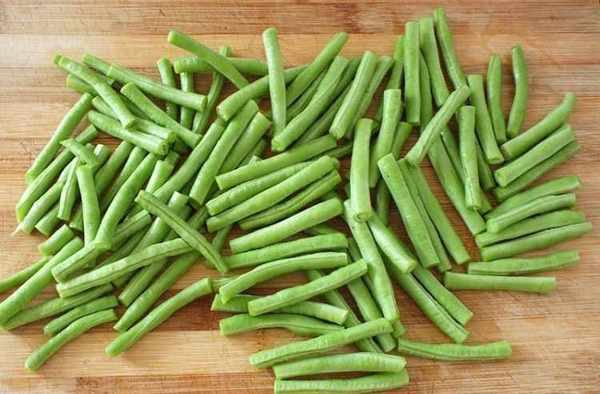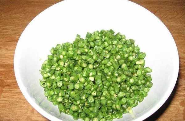 1:豆角切成小顆粒狀,飛水1分鐘撈起濾幹水份;雞蛋打散,加鹽調味、把雞蛋加在在打散的半熟豆角中攪拌均勻,加入鹽油調味