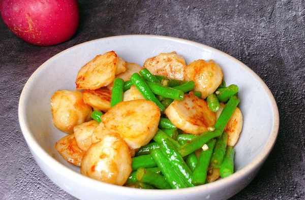 1:豆角切一節一節,飛水2分鐘撈起濾幹水份,魚丸切片,熱鍋放油翻炒魚丸,接著倒豆角繼續翻炒1分鐘,接著倒入適量開水煮2分鐘,接下來放適量生抽和適量鹽繼續翻炒入味。