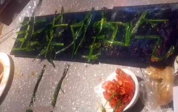請客的女子說,說實話這個韭菜確實太難吃瞭,當時也圖一個玩樂,就拼出瞭這四個字,也能給飯店一個提示。