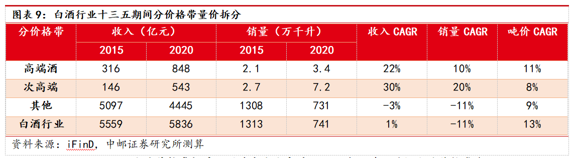 2.結構:省內消費結構升級延續中高端、次高、高端均有擴容,同時頭部品牌擠壓中小品牌份額,存量和增量空間雙重增長。