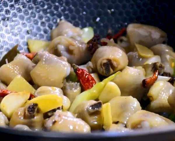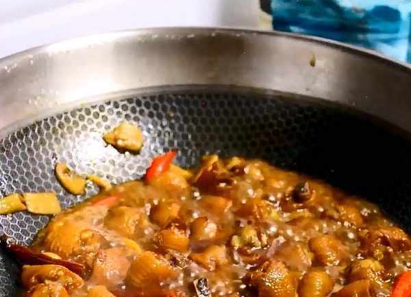 雞拐炒至變色,加適量的生抽調味,少許老抽調色,
