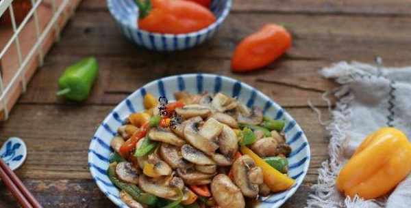 食材:紅、黃、綠青椒各1個,白蘑菇300克,黑青椒汁1湯匙,油、鹽各適量。