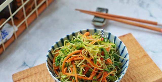 食材:黑豆苗400克,胡蘿卜1根,蠔油1湯匙,油,鹽各適量。