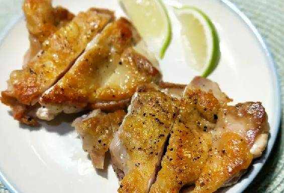 不需沾面粉,也能煎出酥脆口感多汁的雞腿排,簡單胡椒粉與鹽巴調味,零廚藝料理。