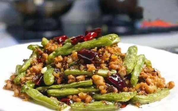 做法:四季豆洗好去絲、切成小段,先下油鍋稍微炸到表皮縮起來備用。接著另起油鍋,放四季豆、肉末、薑末、辣椒、米酒、醬油翻炒,加入少許鹽巴、糖就能上桌囉!