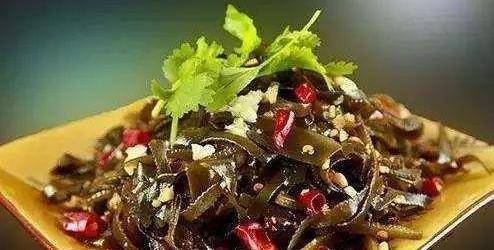 幹海帶稍稍抖落上面的泥土,放入蒸鍋中蒸30-40分鐘將蒸好的海帶放入清水中浸泡2-3小時,沖洗幹凈將泡好的海帶切成細絲,沸水中加點醋,放入海帶絲煮3-5分鐘,撈出過涼放入胡蘿卜絲、尖椒絲等配菜,加鹽、糖、雞精、醋、蒜泥、花椒油拌勻即可