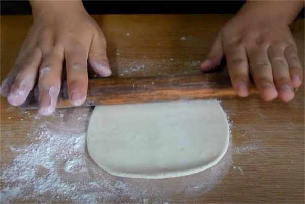 3.咱們取出來一小塊面劑,把它給揉勻瞭,直接按扁,搟成小圓餅。