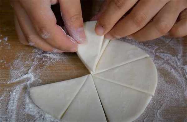 6.如果粘在一起的面塊,咱們就給它拔拉開,一隻手固定在底部不動,另一隻手捏住頂端旋轉,最後把這個小揪揪向下按壓。