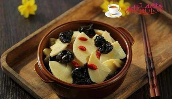 制作:將木耳提前泡軟;燒鍋水加入點鹽,將木耳放入鍋中煮2分鐘後撈出備用;將冬筍片進去繼續焯煮3分鐘後撈出備用;熱鍋涼油,放入冬筍片進去翻炒兩下,再加入黑木耳進去翻炒;加入適量的鹽調味;翻炒均勻,最後加入枸杞即可。