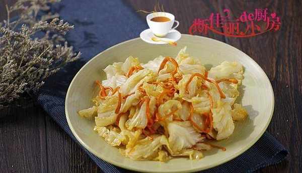 制作:熱鍋涼油,放入蟲草花進去翻炒;炒至微微發軟,加入手撕包菜葉進去翻炒;加入少許鹽調味,翻炒均勻即可。