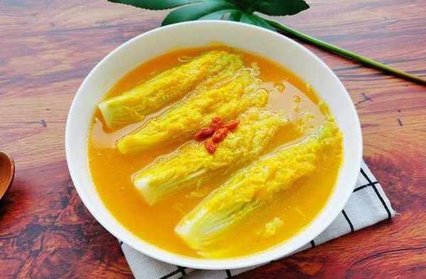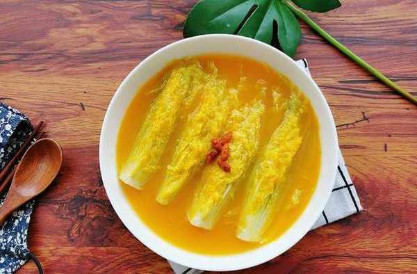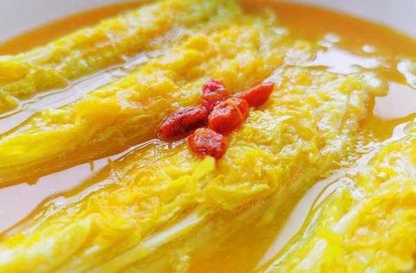 第六步,另起鍋添大半碗水,用大火燒開,倒入蒸好的南瓜泥和枸杞,用勺子不停地攪拌,煮到南瓜湯汁變得輕微濃稠狀態關火,起鍋將煮好的湯汁倒入娃娃菜的盤子裡就做好瞭。