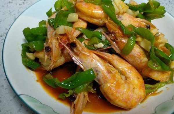 1、食材準備:對蝦10個,剪掉蝦須,去開背去掉蝦線,清洗幹凈瀝幹水;青椒3個,清洗幹凈,切碎;生薑切絲,蒜粒剁碎。