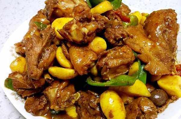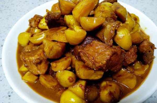 3、看到湯汁明顯變少,放入板栗塊,繼續燜煮8-10分鐘即可。