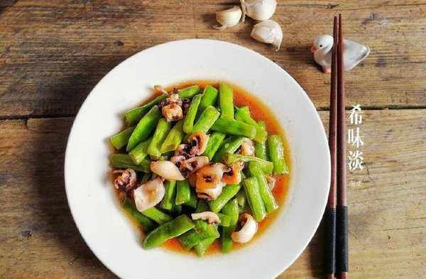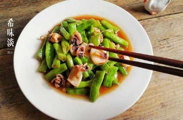 那就是墨魚仔,我每次市集上遇到必買的,因為它口感有點Q彈吃起來也很鮮美,關鍵它補鈣呢,買來給孩子吃最好不過瞭。現在9月海域上的海鮮很多,尤其這種小個的墨魚,價錢還實惠。四季豆和墨魚仔搭配是天生一對的,簡單爆炒就鮮的掉眉毛,四季豆在東方文化裡被為“福豆”有福壽的意思,很好寓意的蔬菜哦!四季豆含大量的鐵元素,它是菠菜的10倍,非常適合缺鐵的人,還能有益心臟呢,真是老少皆宜的一道菜。快來試試吧!
