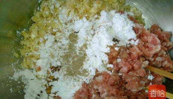 4.加入淀粉1勺,少許胡椒粉和少許鹽。