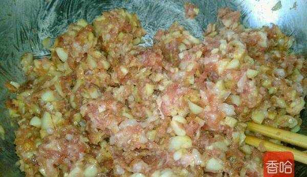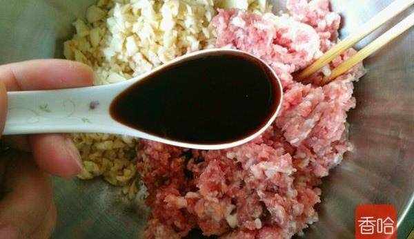 2.百合洗凈切碎和肉末放入容器中,加入生抽1勺。