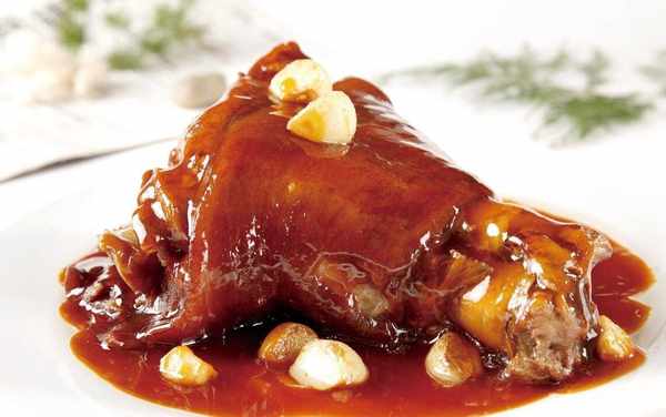 無棣縣小泊頭鎮文傢村,出產的泊頭肘子是無棣的知名食品,選用皮薄肉嫩的豬肘子,全要前肘,前肘帶蹄筋口感豐富,輔以多種原料,經洗凈、焯水、過油後,文火慢燉水、肉質鮮嫩,觀之誘人生津,品之酥爛清香,來個饅頭來個大蒜,這肉的口感就出來瞭。