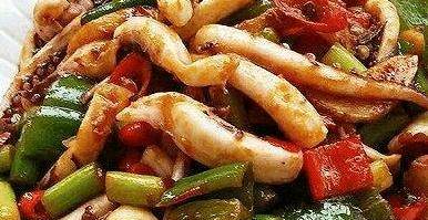元蔥,青椒,薑絲,蒜末,魷魚,料酒
