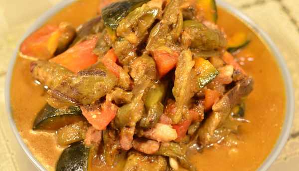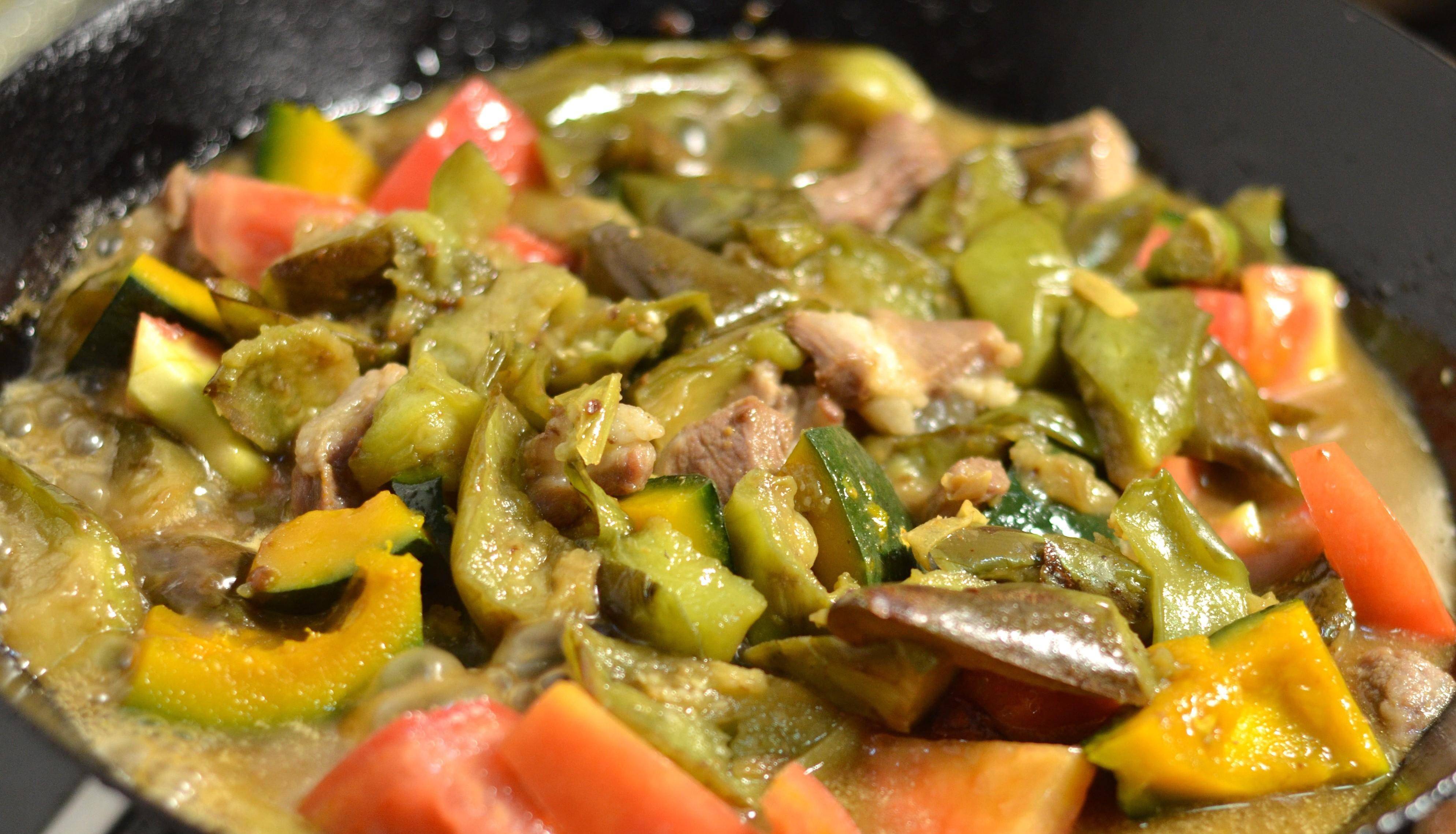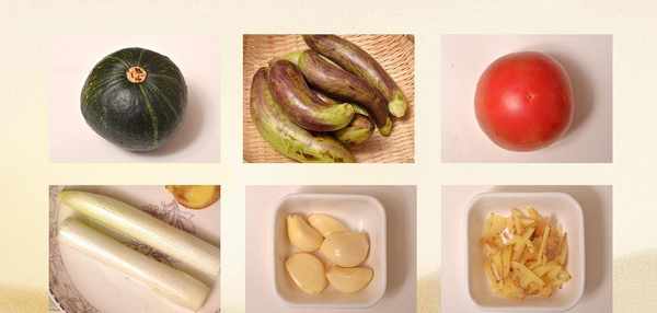 做這道菜的食材非常簡單,有南瓜,茄子,豬肉,西紅柿,以及少許蔥、薑、蒜等一些輔料。