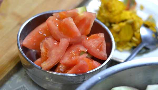 我們再把西紅柿切成塊狀,這道菜加入一個西紅柿調味,味道更加酸甜鮮美。