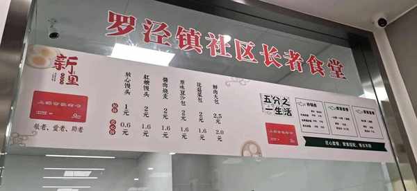 據瞭解,這傢社區長者食堂由羅涇鎮打造,委托五分之一品牌管理有限公司運營,工作日每天供應早餐和午餐。早餐主要供應各種口味的包子和白粥,價格在1元至2.5元之間,包子使用敬老卡能享受6-8折的優惠價。午餐供應不同標準的葷素套餐和各種砂鍋,價格十分親民。