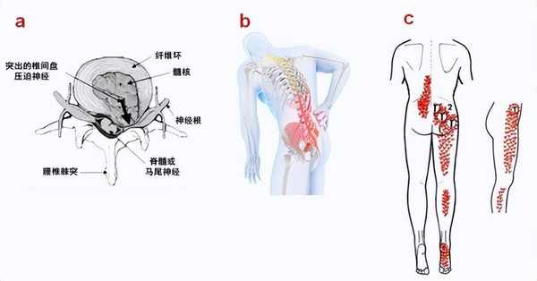 2.坐骨神經痛:多表現為一側,疼痛從下腰部向臀部、下肢、足背或足外側放射,可伴有麻木感。