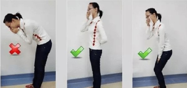 7.打噴嚏、咳嗽時,很容易拉傷背肌及增加腰椎間盤的壓力,此時將膝蓋、髖關節稍屈曲。