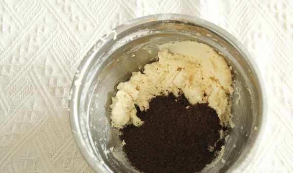 步驟7、用刮刀切拌按壓均勻,倒入奧利奧碎。繼續壓拌均勻。