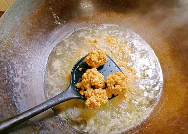 ③鍋中燒水,水開後加點鹽。把剁好的肉餡用手隨意抓一點放進去。水燒開後撈出表面浮沫,鮮味更濃。等到肉表面變色後用鏟子打碎,便於入味。
