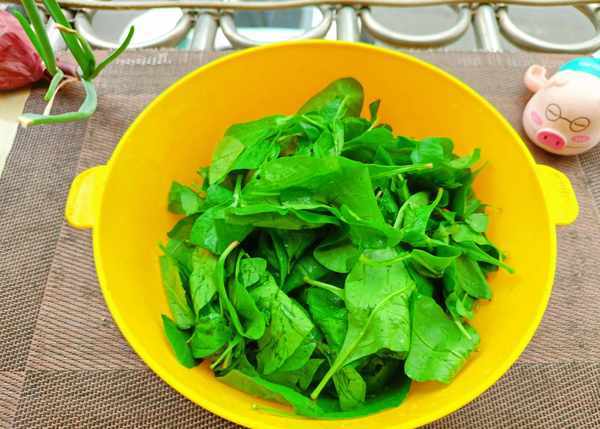 ②把枸杞葉泡入淡鹽水中淘洗幾次,撈出瀝幹水分。