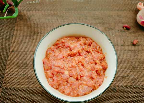 ①我們把前腿肉洗幹凈,剁成碎末。加入生抽、老抽、蔥薑水,順時針攪拌一會兒。再加入一點鹽、紅薯淀粉、食用油順時針攪拌。